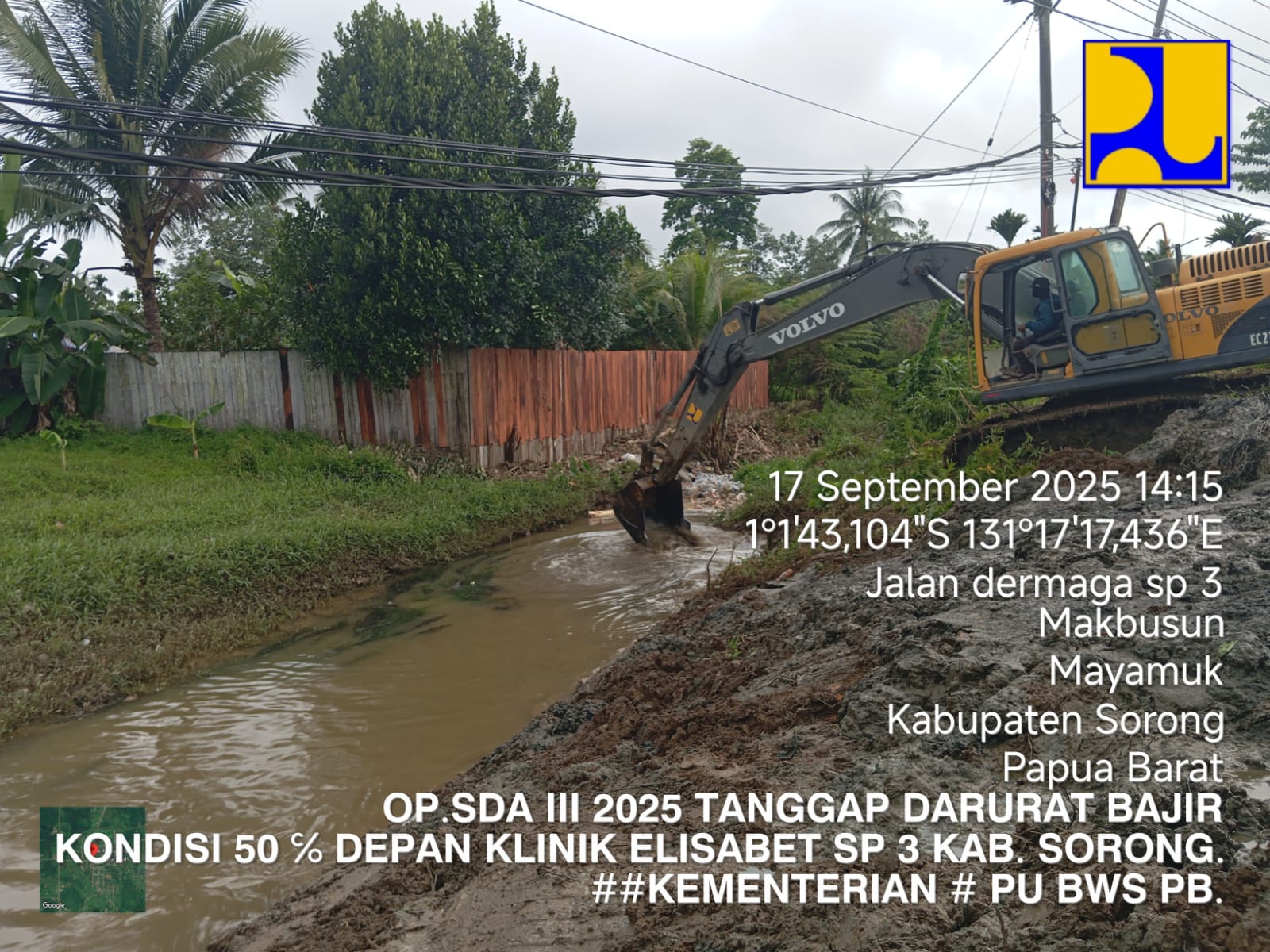 JAKARTA, LINTAS — Kementerian Pekerjaan Umum (PU) menurunkan dua unit ekskavator untuk melakukan normalisasi kanal Makbusun di Distrik Mayamuk serta Sungai Klafma di Distrik Aimasi, Kabupaten Sorong, Papua Barat. Upaya ini ditempuh guna memperlancar aliran air dan mengurangi genangan pascabanjir.