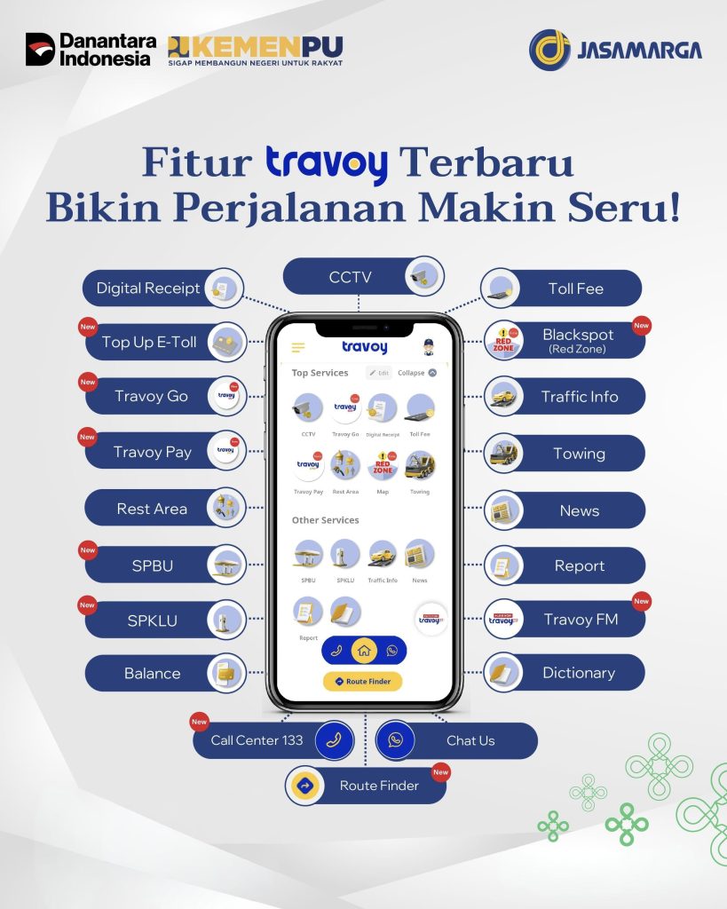 Aplikasi kini dilengkapi Travoy Pay untuk transaksi multi-biller termasuk top up kartu uang elektronik, fitur Map dengan informasi kondisi jalan tol dan rekayasa lalu lintas, serta Router Finder untuk membantu memilih rute terbaik.