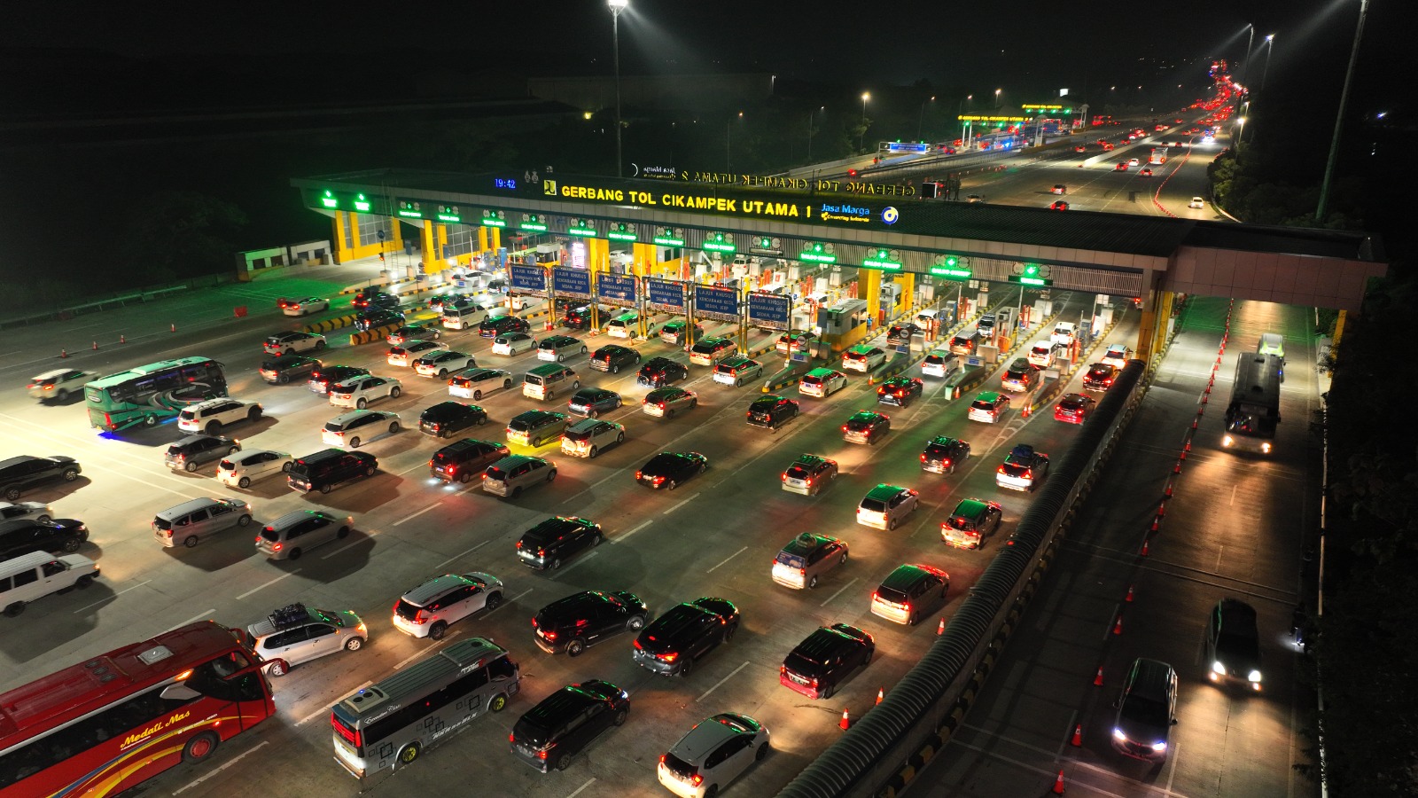 Cikampek, Lintas – Arus mudik via jalan tol tertinggi hingga saat ini terjadi pada Rabu (19/4/2023) atau H-3 Lebaran 2023. Meski volume kendaraan di jalan tol melonjak drastis, arus mudik dapat tertangani dengan relatif baik.
