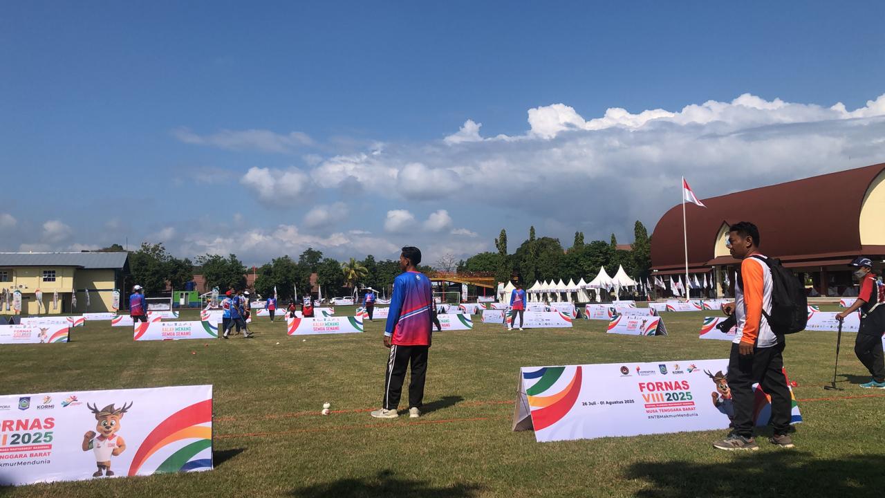 MATARAM, LINTAS — Pertandingan hari pertama gateball di kejuaraan Festival Olahraga Rekreasi Nasional (FORNAS) berlangsung cukup seru dan kompetitif di Lapangan Bhara Daksa Polda, Kota Mataram, Nusa Tenggara Barat, Jumat (25/7/2025).
