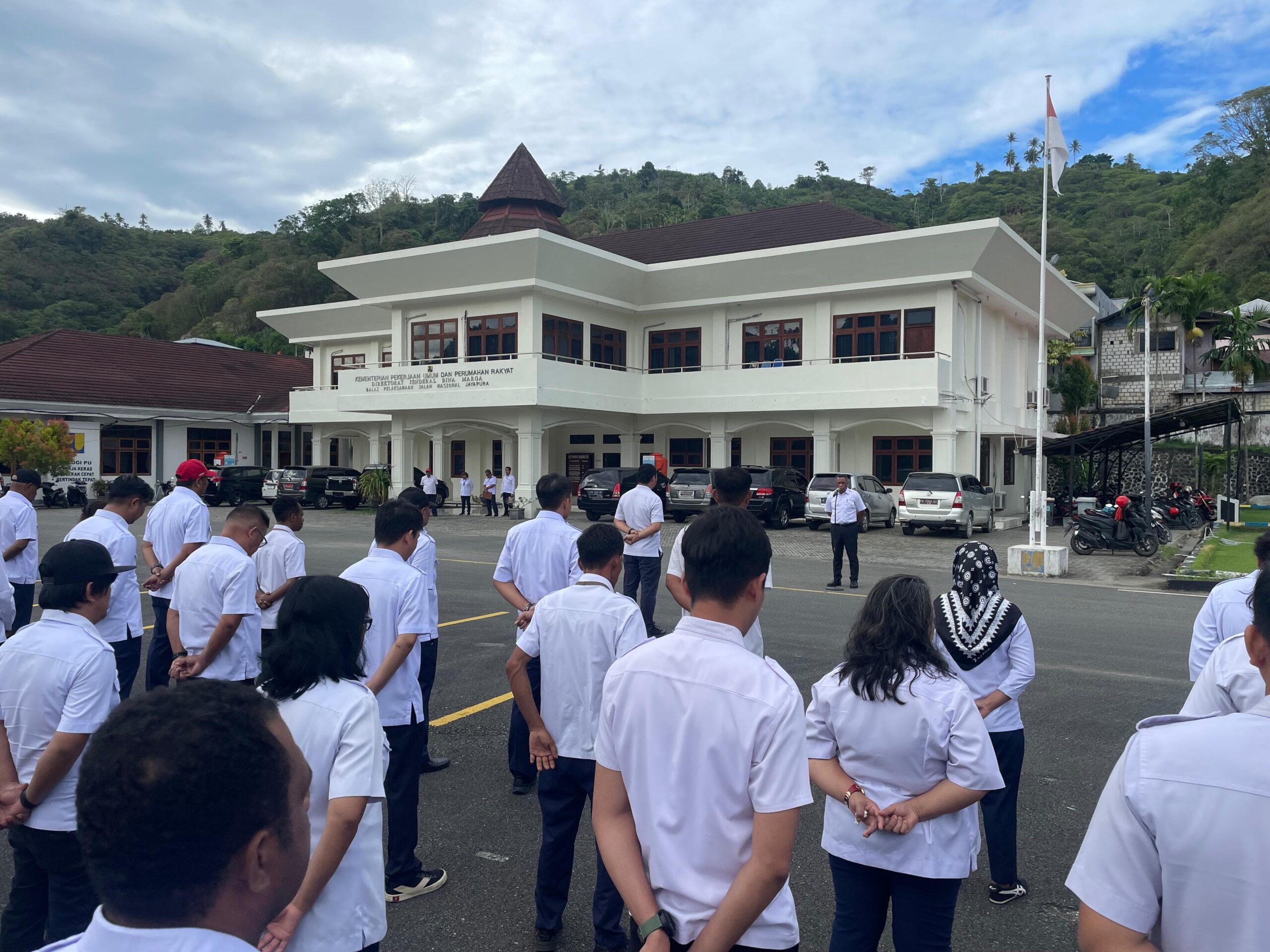 JAYAPURA, LINTAS – Agar tetap menjaga kekompakan bagi seluruh pegawai dan staf, termasuk antara pegawai dan atasan, Balai Pelaksanaan Jalan Nasional (BPJN) Jayapura melaksanakan penegakan aturan disiplin salah satunya wajib ikut apel pagi dan sore setiap hari.