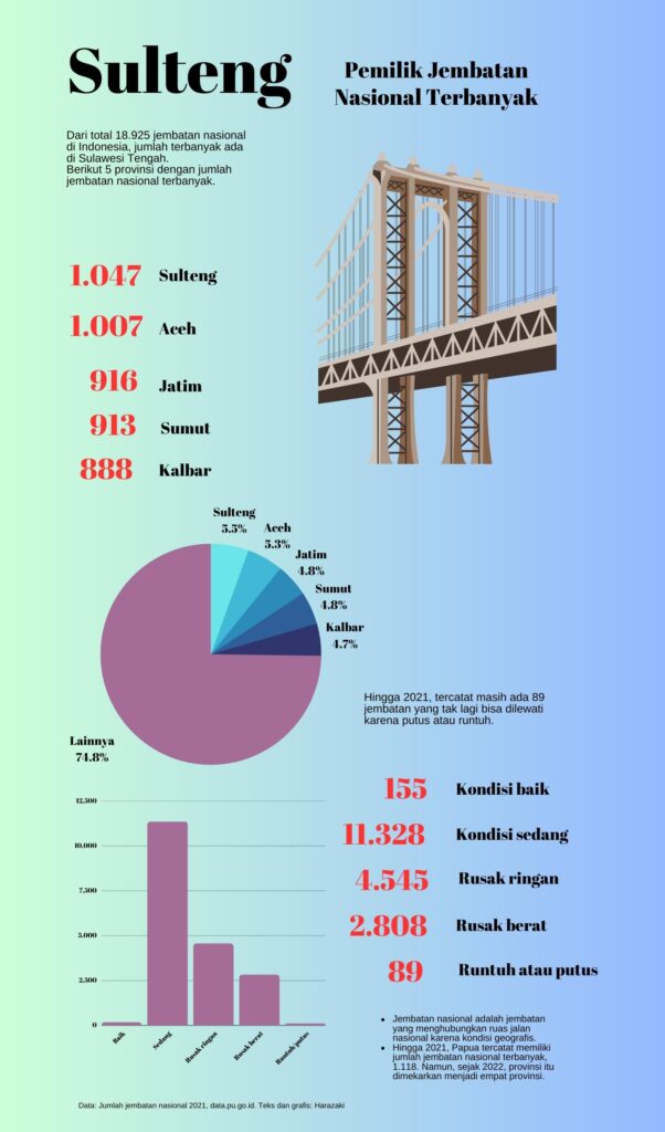 Dari 38 provinsi di Indonesia, terdapat lima provinsi teratas dengan jumlah jembatan.