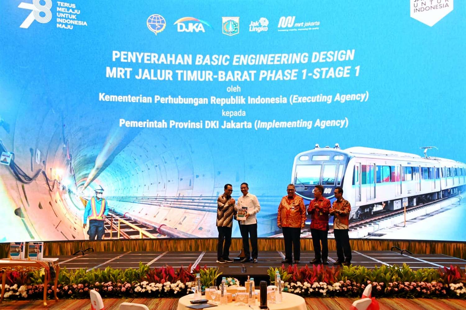 Jakarta, Lintas – MRT jalur Timur Barat atau rute Tangerang-Jakarta-Bekasi sejauh 84,1 km dipastikan akan dibangun mulai Agustus 2024. Kepastian itu ditandai dengan penyerahan Dokumen Basic Engineering Design (BED) MRT Jalur Timur-Barat (East-West) Fase 1 Tahap 1 oleh Menteri Perhubungan Budi Karya Sumadi kepada Penjabat Gubernur Jakarta Heru Budi Hartono, Senin (7/8/2023), di Jakarta.