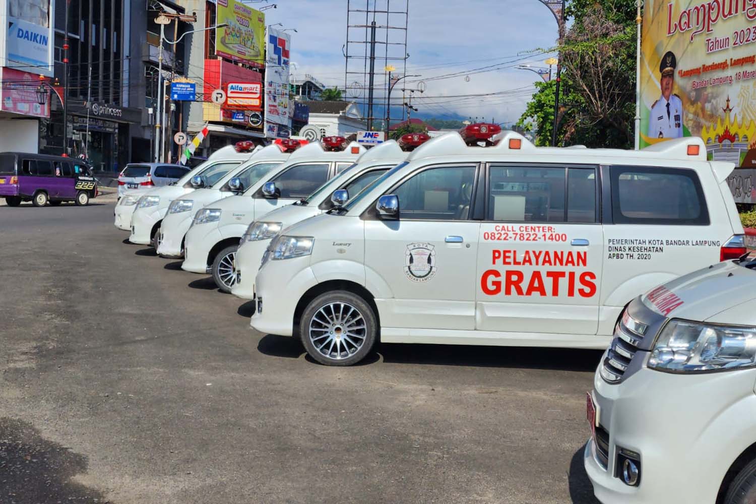 Saat ini, Pemkot Bandar Lampung memiliki 12 unit ambulans gratis siap operasional. Disebutkan, ambulans ini bisa menjemput dan mengantar pasien dari rumah ke tempat pelayanan kesehatan. Termasuk pasien yang memerlukan layanan rujukan lebih lanjut.