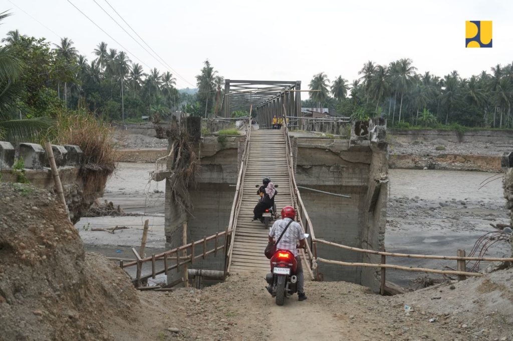 Menurut Dody, untuk mempercepat pemulihan di lapangan, Kementerian PU telah membangun jembatan darurat sebagai solusi cepat, di antaranya jembatan Bailey dengan bentang hingga 30 meter dan kapasitas beban mencapai 30 ton, serta jembatan Armco yang disesuaikan dengan kondisi lokasi.