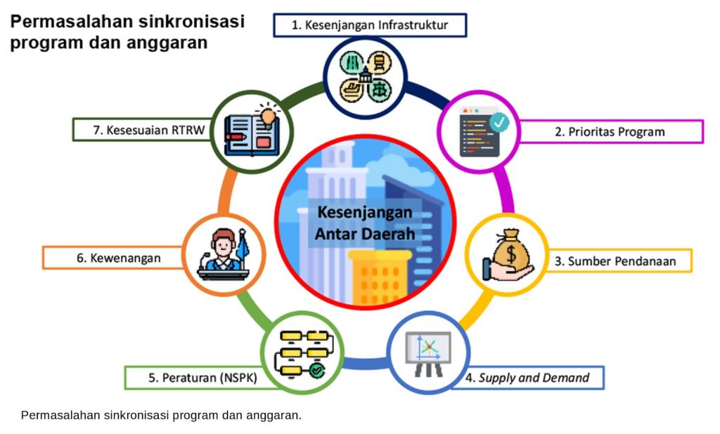 Umumnya pengelolaan pembangunan kawasan sesuai dengan RTRW, seperti kawasan Jebodetabekpunjur masih menyisakan perhatian sekurang-kurangnya tujuh permasalahan terkait sinkronisasi program dan anggaran.